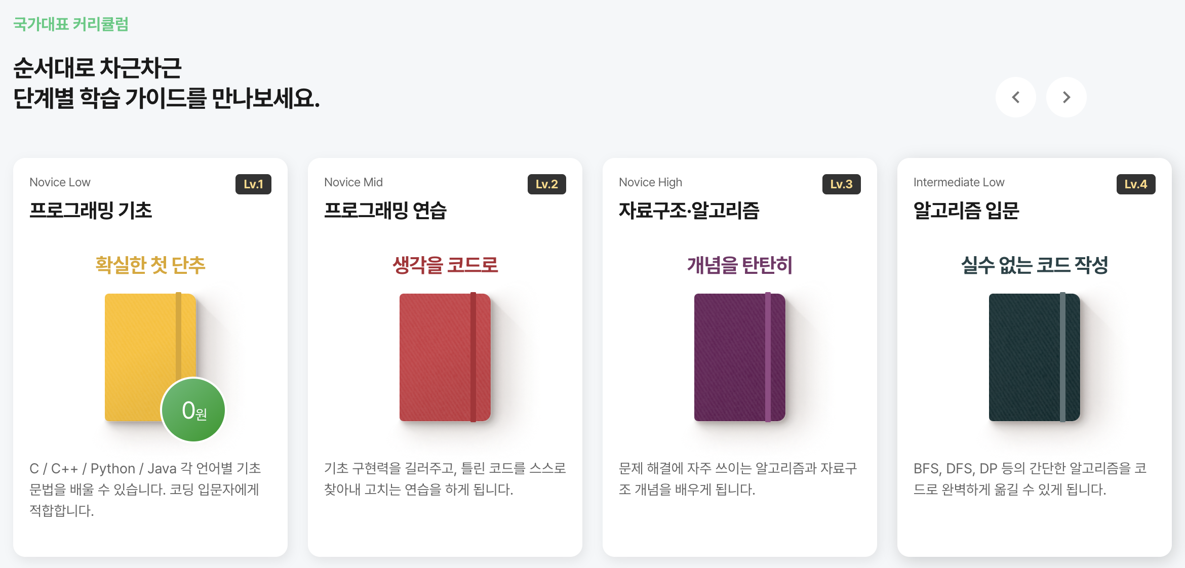 백준, 릿코드, 프로그래머스 등등 많은 알고리즘 풀이 웹사이트들이 있지만 그중에서 코드트리의 특징이 있다면 바로 이 커리큘럼이다.
