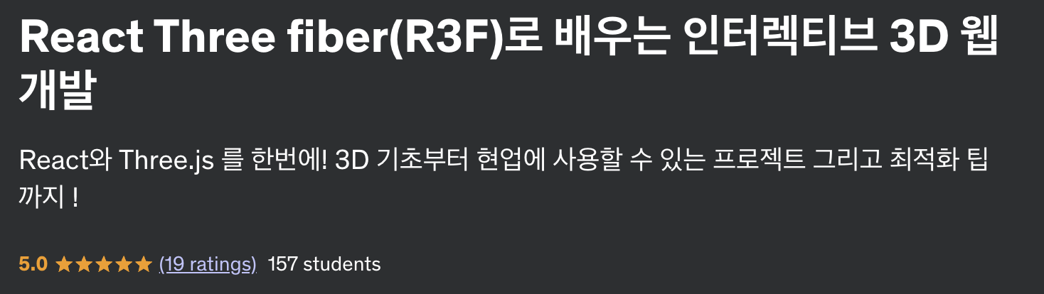 내가 선택한 강의는 React Three fiber(R3F)로 배우는 인터렉티브 3D 웹 개발